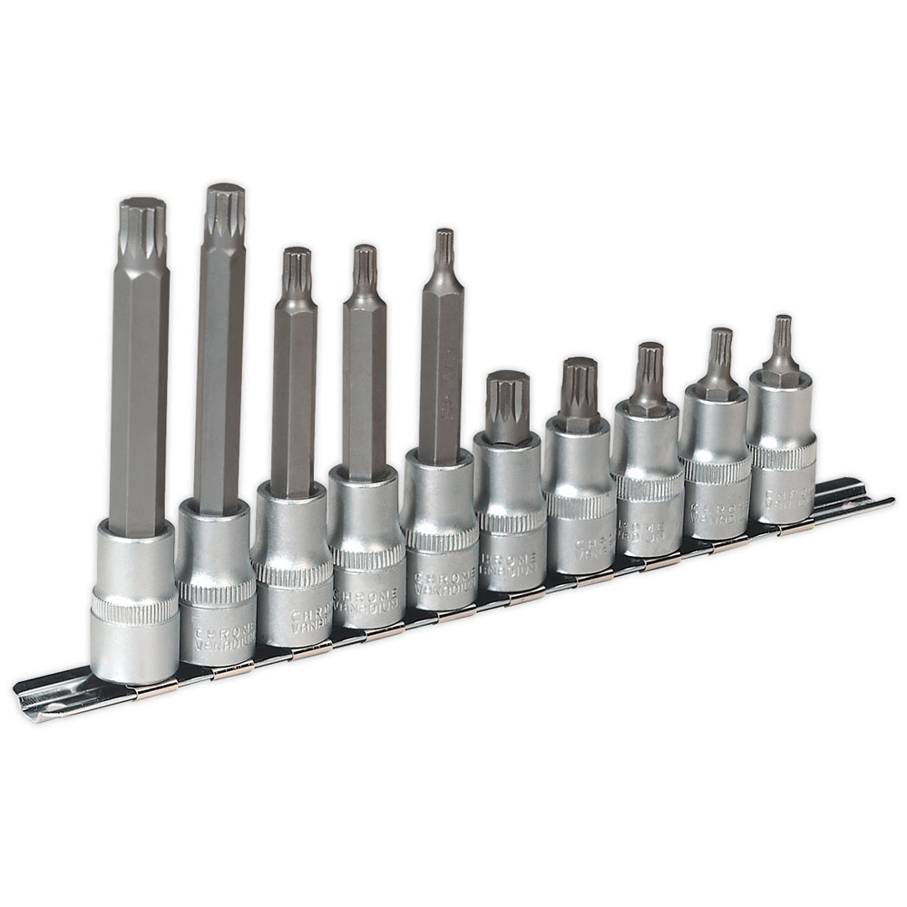 Sealey AK6216 Spline Socket Bit Set 10pc 3/8"sq Drive