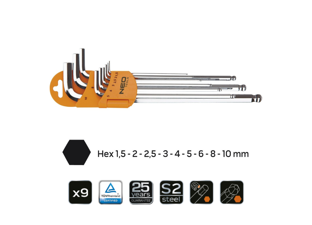 1. Klucze sześciokątne 1,5 - 10mm zestaw 9szt 69.99
