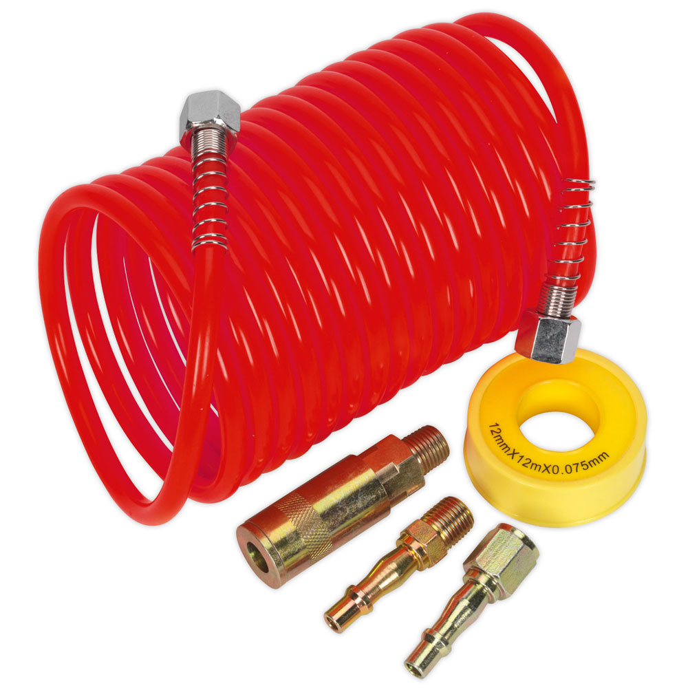 12. Sealey AHK03 Air Hose Kit 5m x Ø5mm PU Coiled with Connectors 93.51