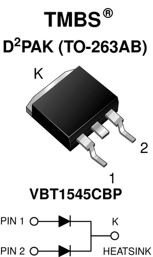 VBT1545CBP-E3 Trench MOS Barrier Schottky Rectifier for PV Solar Cell Bypass Protection Ultra Low VF = 0.41 V at IF = 5 A