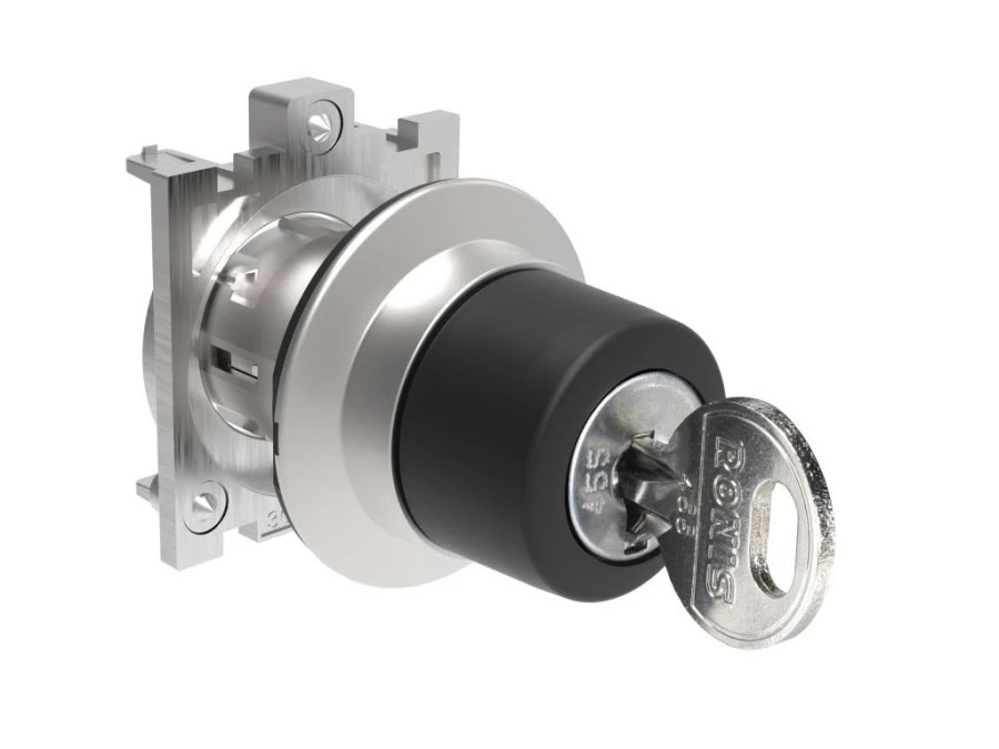 Metalowy przełącznik płaski 2 pozycyjny 0-1 fi30mm z kluczem wyjęcie klucza w pozycji 0 LPFS320