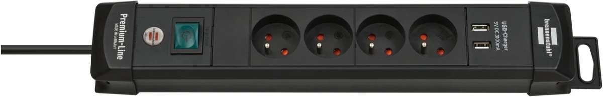 12. Listwa zasilająca Premium-Line z USB 4-gniazda czarna 1,8m H05VV-F 3G1,5 1951144602 119.19