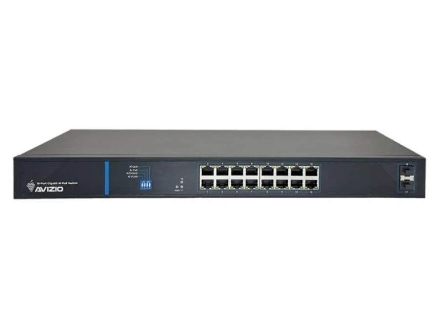Niezarządzalny przełącznik (switch) 16 portów RJ45 PoE+ 1Gb/s + 2 porty SFP Uplink 1Gb/s AVIZIO