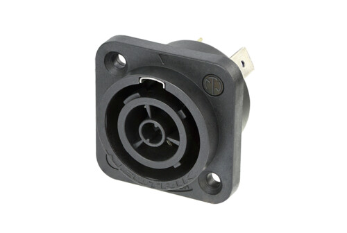 12. Złącze przemysłowe - zasilające 16A Gniazdo 250 V AC 2 + PE Neutrik Czarny Montaż lutowniczy IP65 47.11 x500