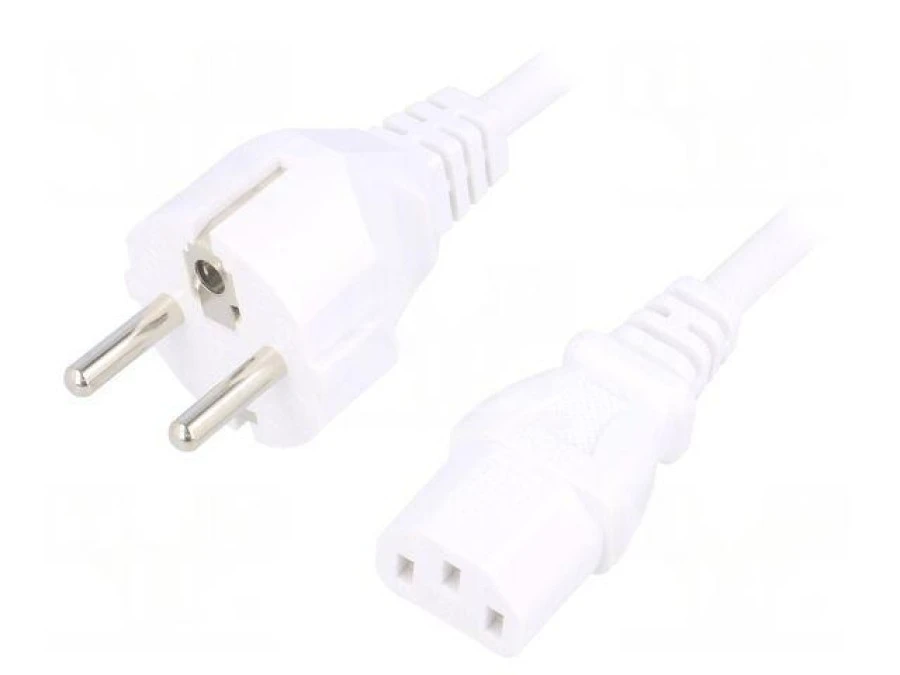 11. Kabel: 3x0,75mm2, CEE 7/7 (E/F) wtyk,IEC C13 żeński, 1,5m LT-312+501 H05VV-F 3X0.75 WHT 1.5M 26.24