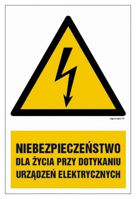 ZNAK - HA006 Niebezpieczeństwo dla życia przy dotykaniu urządzeń elektrycznych 15 x 22,5 cm FN - Folia samoprzylepna