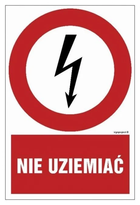 ZNAK - HC009 Nie uziemiać 15 x 22,5 cm FN - Folia samoprzylepna