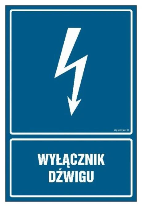 ZNAK - HG025 Wyłącznik dźwigu 15 x 22,5 cm FN - Folia samoprzylepna