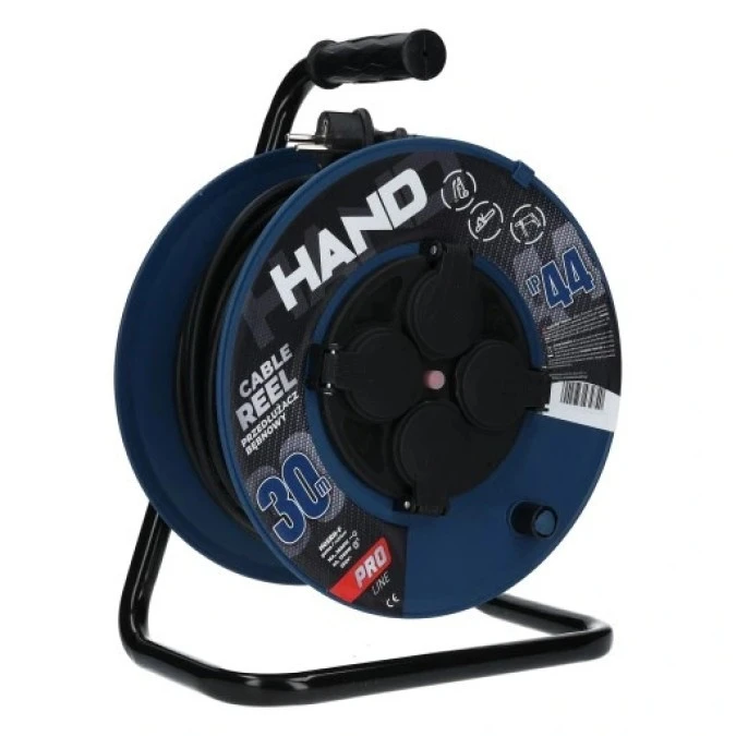 Przedłużacz budowlany zwijany na bębnie Rozgałęźnik na 4 gniazda 2P+Z 230V IP44 na kablu OW 3x2,5mm2 30m HAND