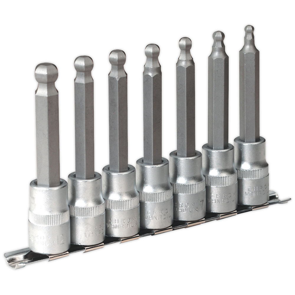 Sealey AK622 Hex Ball-end Socket Bit Set 7pc 100mm 1/2"sq Drive Metric