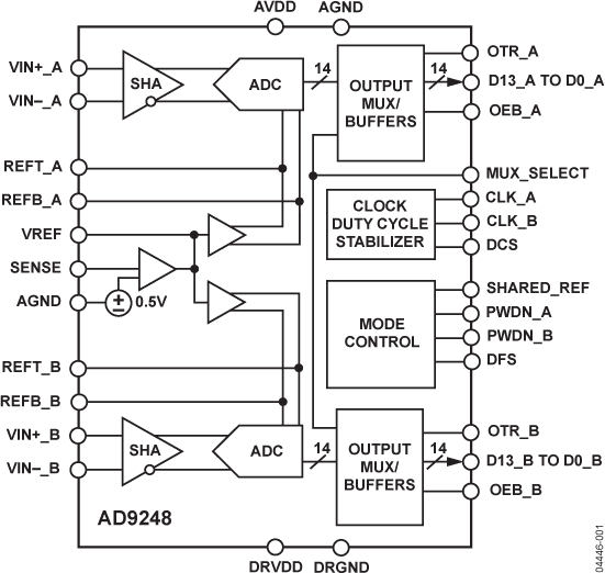 Dual 14-Bit, 20/40/65 MSPS, 3 V Analog-to-Digital Converter