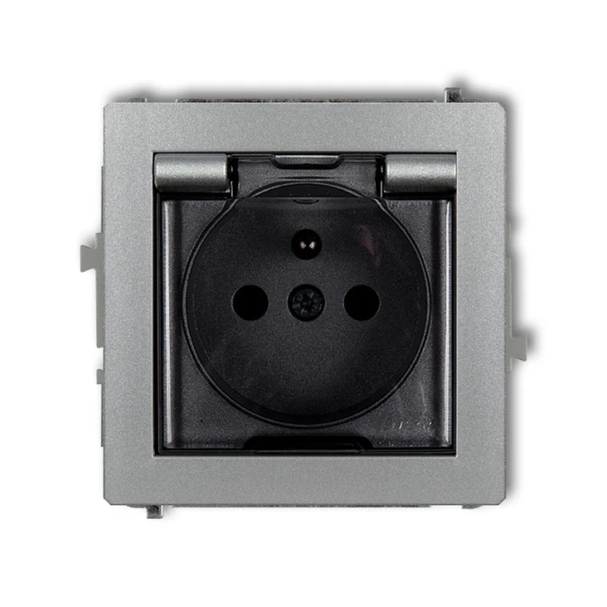DECO Gniazdo bryzgoszczelne z/u (klapka dymna) srebrny metalik 7DGPB-1zdp