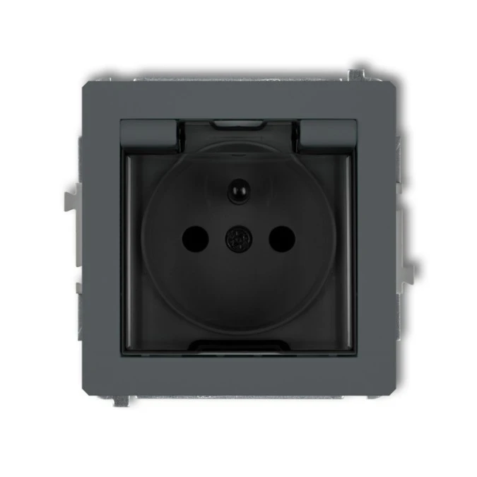 DECO Gniazdo bryzgoszczelne z/u (klapka dymna) grafitowy 11DGPB-1zdp