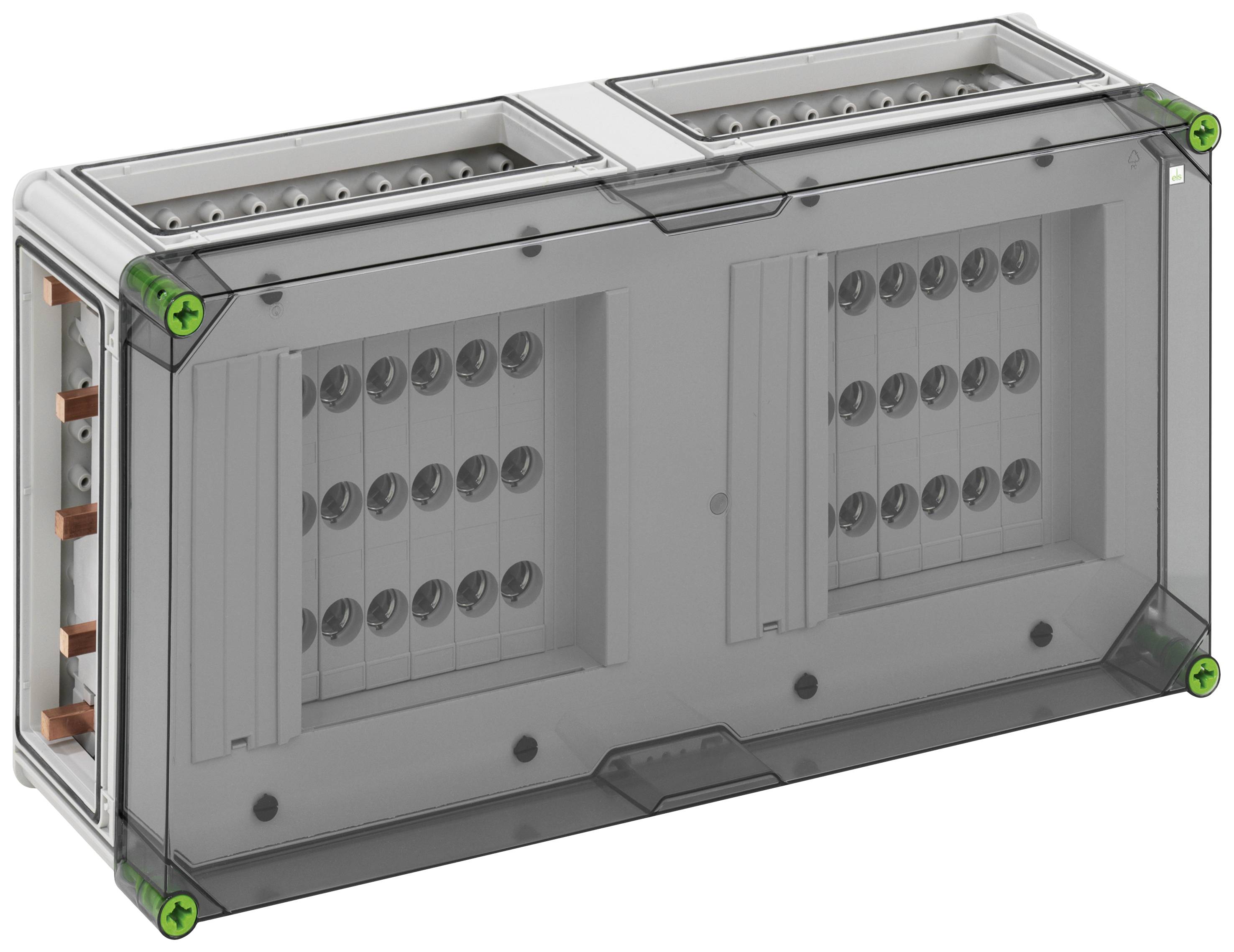Skrzynka Mi z podst. bezpiecz., IP 65, wlk.2 - 300x300x170, 5x63A, E18, szyny zb.250A Mi 3235 2000623