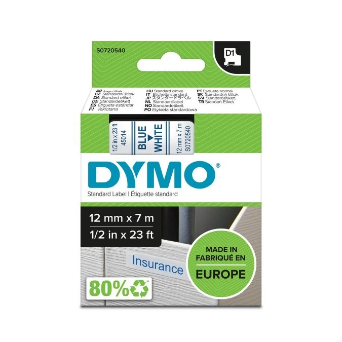 Taśma do drukarek D1 12mm x 7m niebieski/biały S0720540
