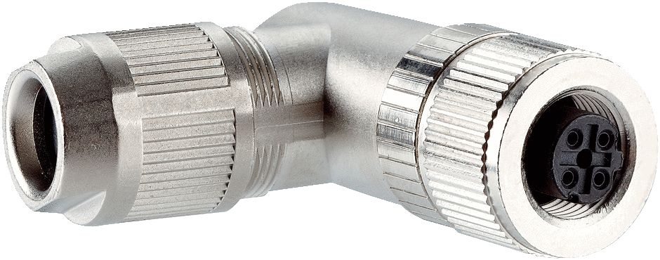 ... żeńskie złącze M12 z kątową, 4-pinową konfiguracją ...