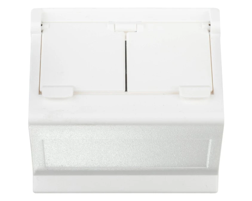9. Simon Connect Płytka K45 gniazda teleinformatycznego podwójnego 2xRJ skośna z przesłoną czysta biel KB80/ 26.30