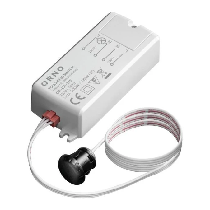 Czujnik zbliżeniowy automatyczny, włącznik bezdotykowy detektor natynkowy 500W 230V 5A o zasięgu działania 5-6 cm biały ORNO