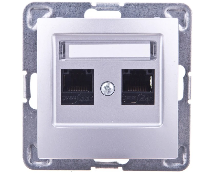 IMPRESJA Gniazdo komputerowe podwójne RJ45 kat.5e MMC srebrne GPK-2Y/K/m/18