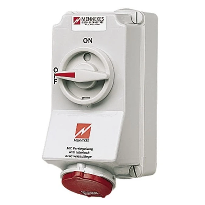 3. Gniazdo naścienne z rozłącznikiem 16A 7p 6h 400V IP44 z podwójną blokadą mechaniczną MEN5536 1521.90
