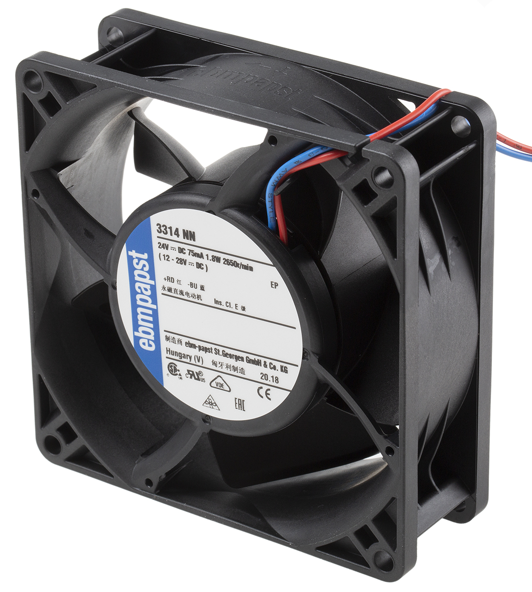 1. DC axial fan, 24 V, 92 x 92 x 25.4 mm, 82 m³/h, 36 dB, ball bearing, ebm-papst 3414 N/2 227.21