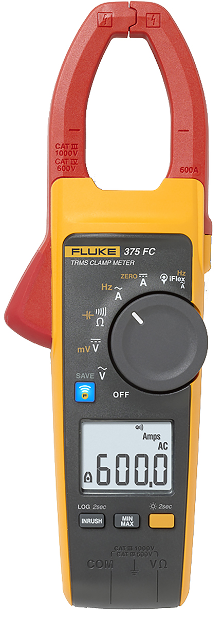 11. Miernik cęgowy Fluke rozdzielczość 100mA 600A dc Miernik cęgowy AC/DC kategoria CAT III, CAT IV 375 FC Bluetooth 3862.94