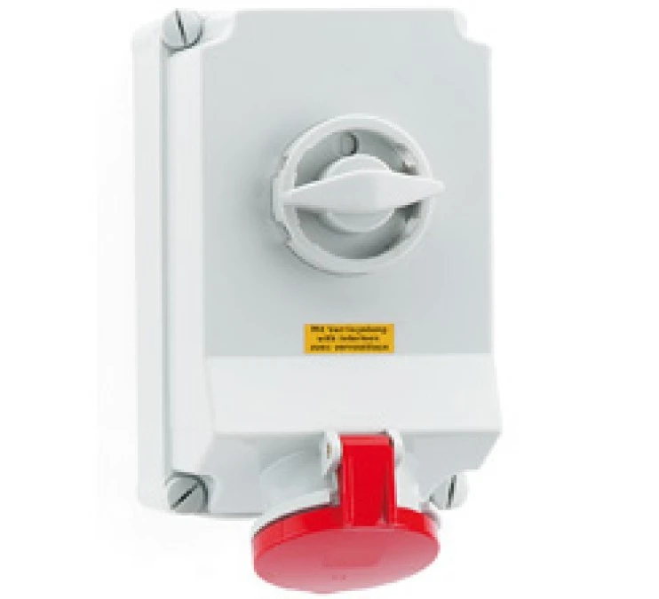 Gniazdo stałe z wyłącznikiem i podwójną blokadą mechaniczną 63A 5p 400V 6h IP44 16603