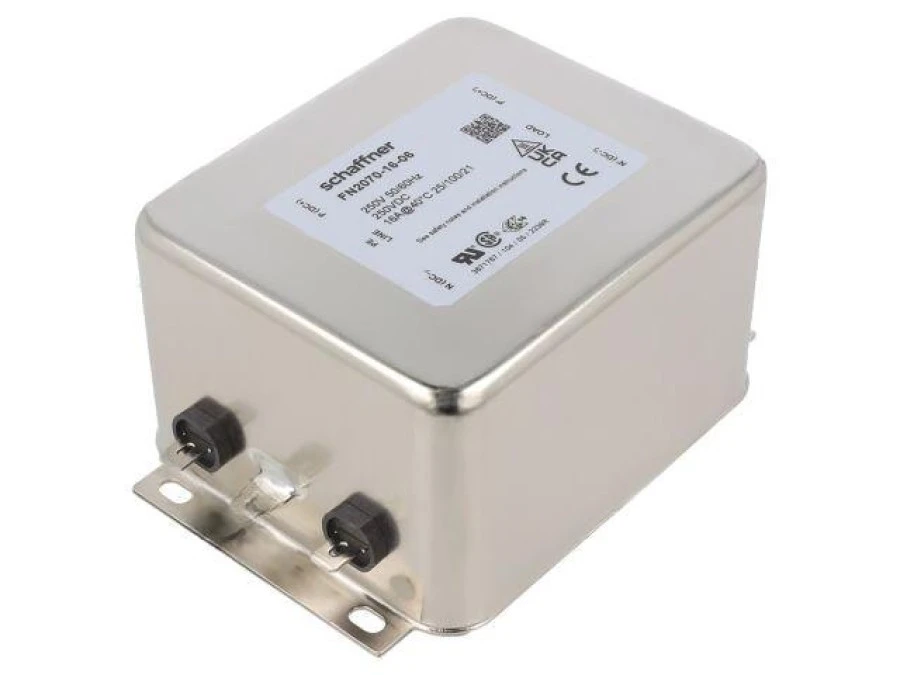 Filtr EMC 16 A FN2415 1-fazowy 220 kΩ 250V ac 60 Hz 3 mH Schaffner Wypust Obudowa