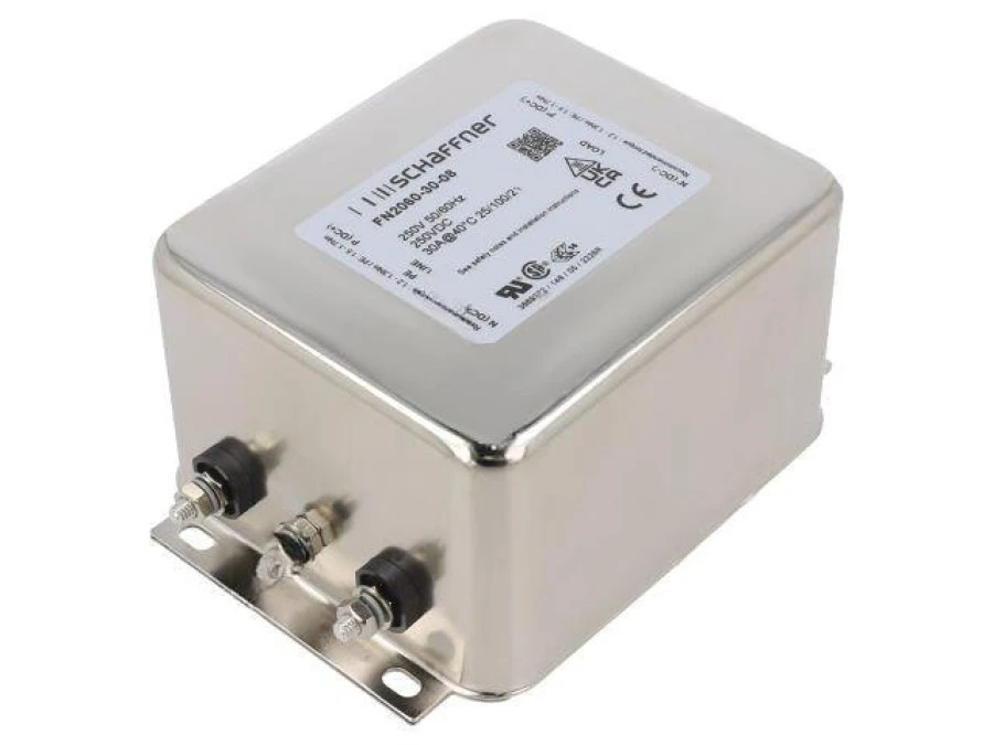 Filtr EMI 30 A FN2090 1-fazowy 220 kΩ 250V ac 0 to 400 Hz 1.5 mH Schaffner Kołek Obudowa