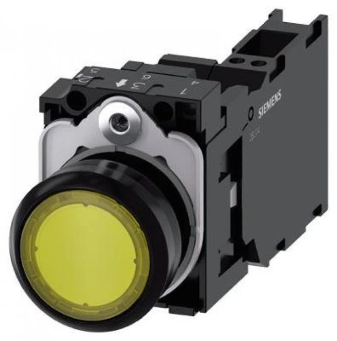 8. SIRIUS ACT, PRZYCISK PODŚWIETLANY, 22MM, OKRĄGŁY, TWORZYWO, ŻÓŁTY, PŁASKI, Z SAMOPOWROTEM, Z UCHWYTEM, 1NO+1N 3SU1102-0AB30-3FA0 79.45