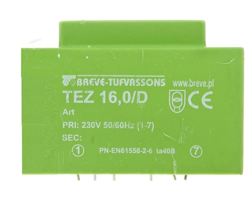Transformator; do druku; TEZ16/D; 230/12-12V; 16VA; 230V; 12V; 0,66A; 12V; 0,66A; THT; BREVE; 02378