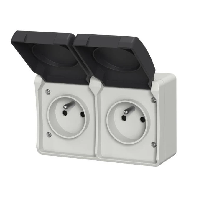 14. Gniazdo podwójne z uziemieniem natynkowe z klapką Aqua Plus IP54 szaro grafitowe 40115 15.03