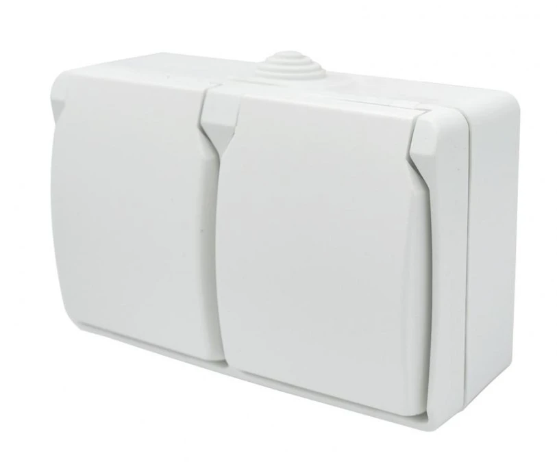 Gniazdo podwójne z uziemieniem natynkowe z klapką Aqua Plus IP44 białe 40225