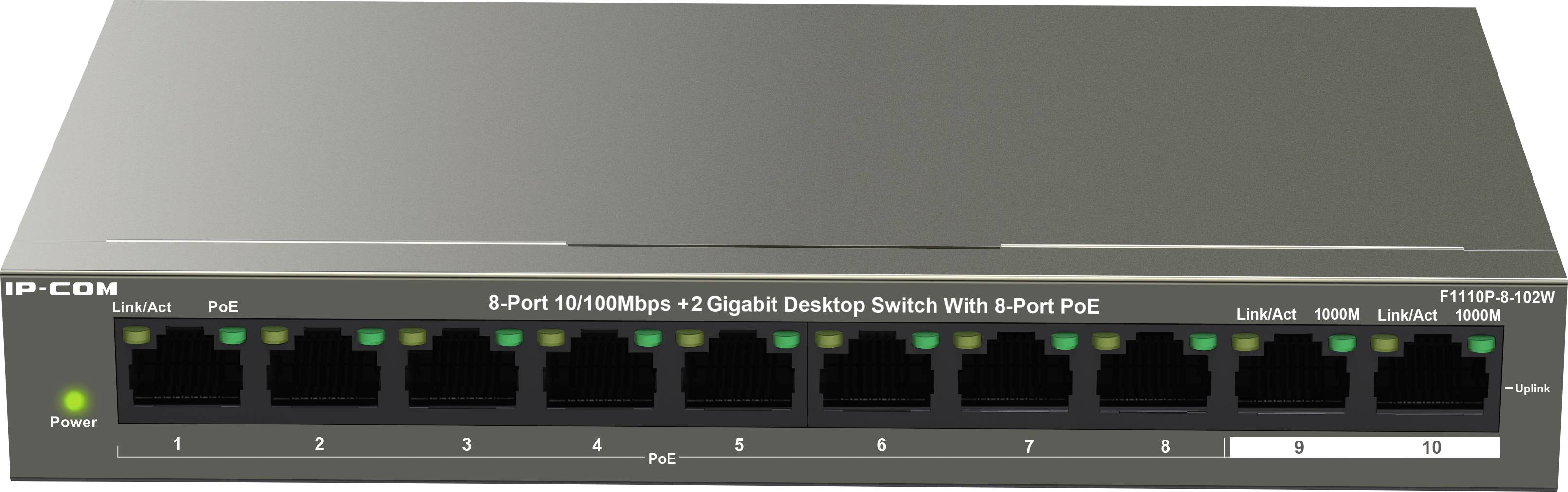IP-COM Networks F1110P-8-102W Switch sieciowy 8+2 Porty 10 / 100 MBit/s funkcja PoE