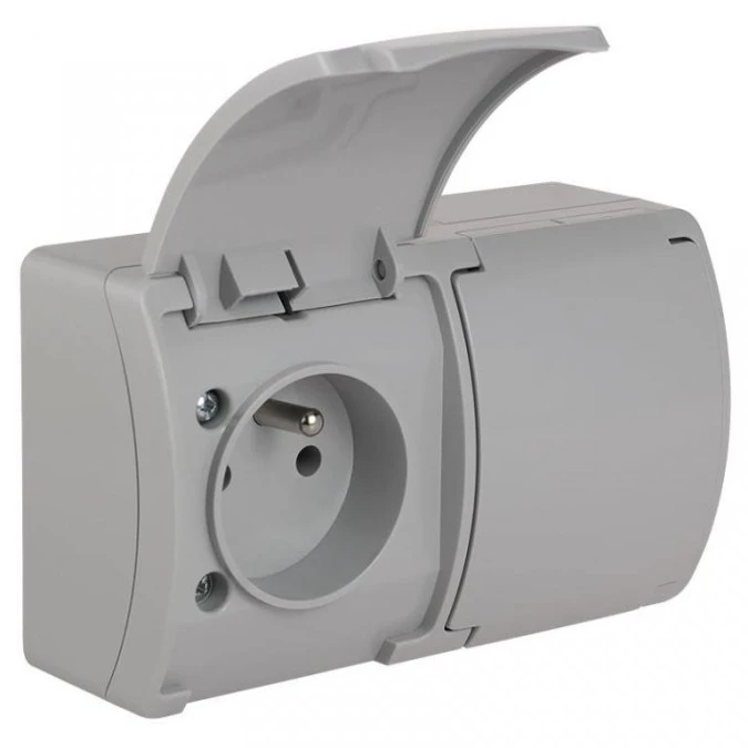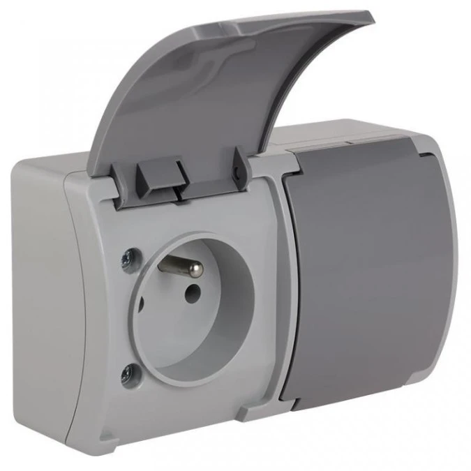 Koala Gniazdo podwójne z/u (2x2P+Z) n/t IP44 popiel z klapką grafit VG 162-08 61.384