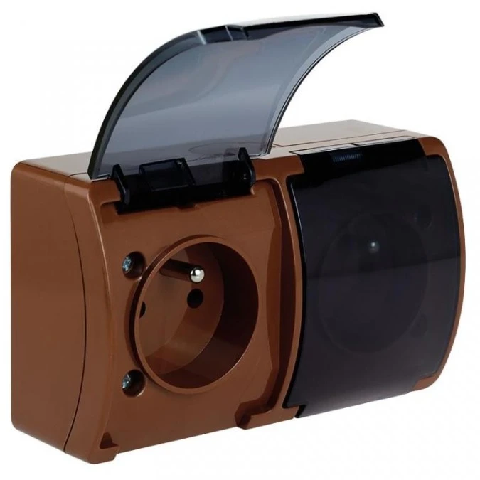 Gniazdo Hermetyczne Podwójne 2X 2P+Z Natynkowe Ip44 Brązowe Koala 162-02 61.381