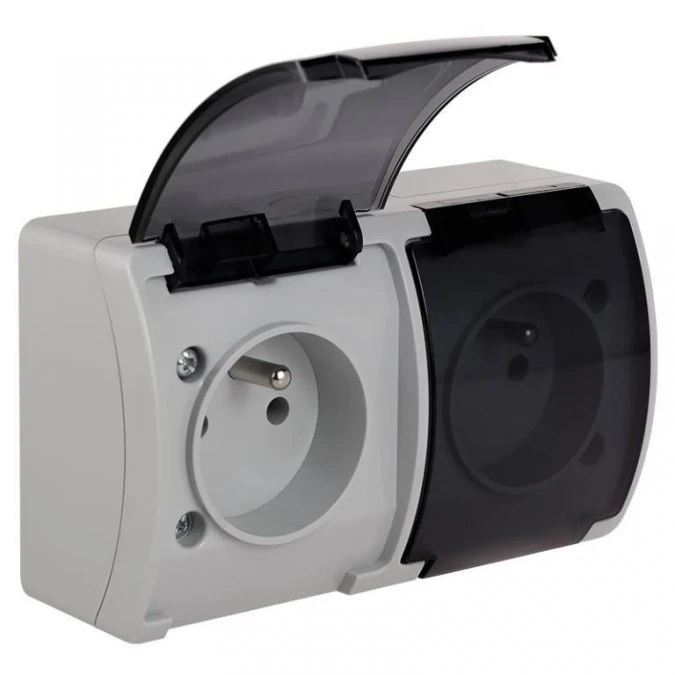 Gniazdo Hermetyczne Podwójne 2X 2P+Z Natynkowe Ip44 Czarne / Przezroczyste...