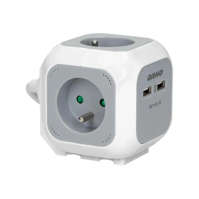 Przedłużacz 4 krotny 2P+Z, ładowarka 2xUSB, 1,4m H05VV-F 3x1mm2 (szaro-biały) OR-AE-13144