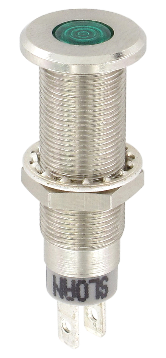 10. Lampka kontrolna do montażu panelowego 5 → 28V, zielona 8.2 x 7.6mm LED Sloan 202.96