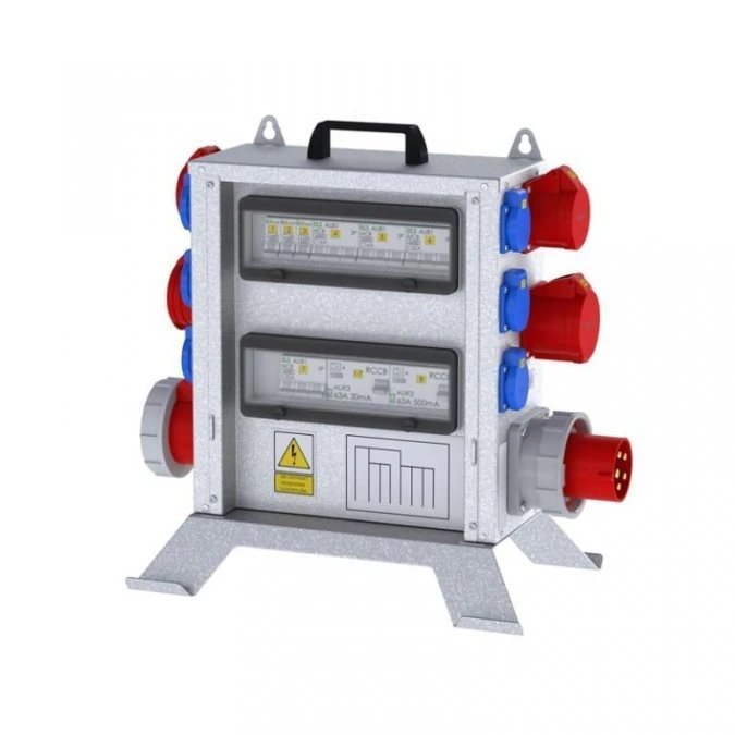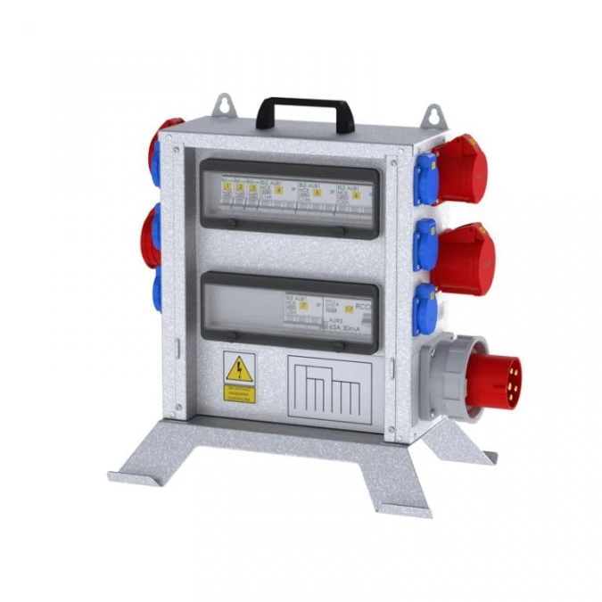 Rozdz. budowlana elTOWER-S W63-012209 IP44 wtyk CEE 63A gniazda: 6xGK 230V 16A 2xCEE 16A 2xCEE 32A 1xCEE 63A 2xRCCB 6kA 53431012
