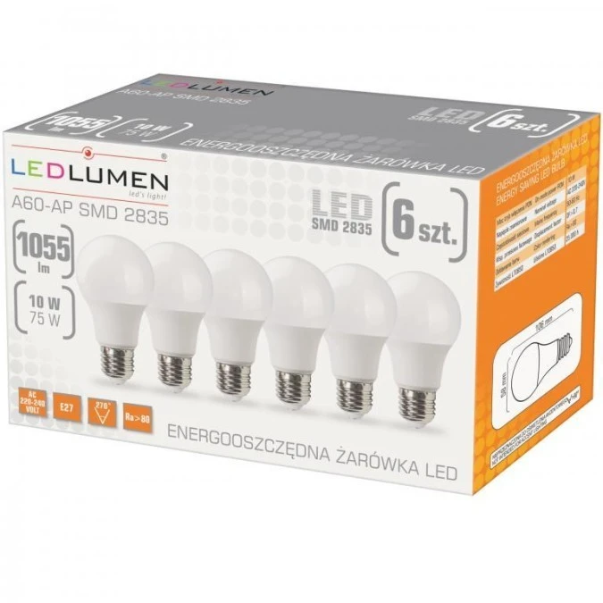 9. Zestaw 6x żarówka LED A60-AP E27 10W 972lm barwa biała ciepła 49.91