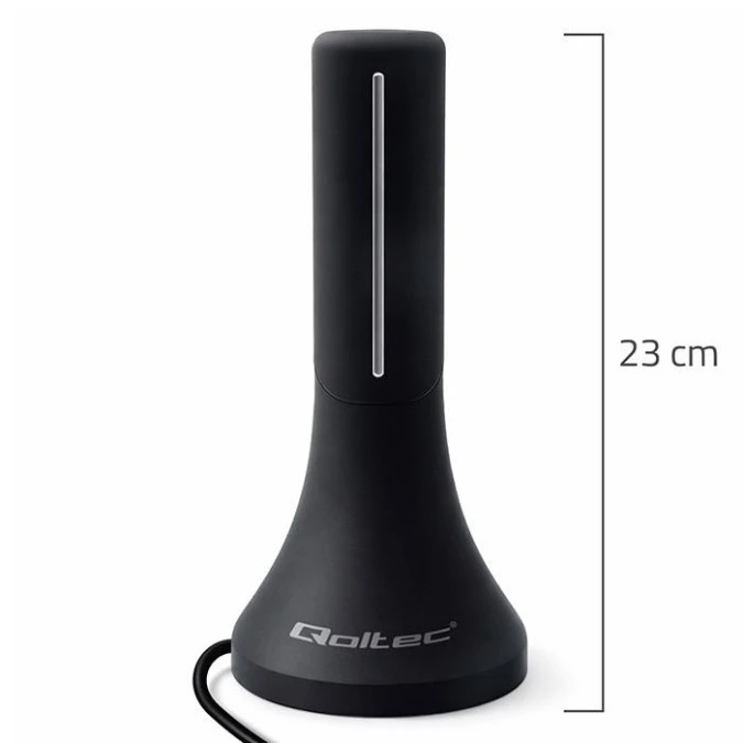 14. Qoltec Wewnętrzna mocna Antena TV DVB-T/T2 wzmacniacz sygnału 4K wysoki zysk 32dBi 360º Kabel 4m 78.70