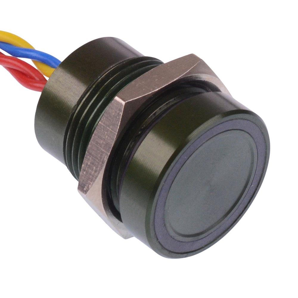 PBAR1AF3000A0G APEM Green illuminated 5VDC Momentary NO 16mm Piezo Switch Prewired IP68