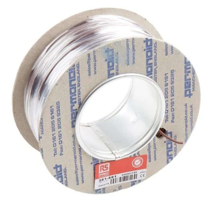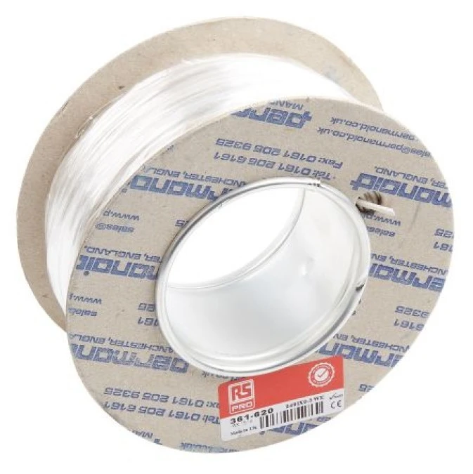 7. Przewód jednożyłowy linkowy, 2491X, 0,5 mm², 16/0,2 mm, 20 AWG, PVC, 500 V, Biały, dł. 100m, RS PRO 194.97