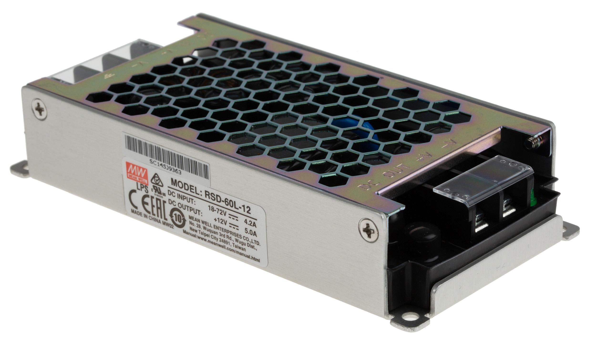 Przetwornica DC-DC, 60W, Uwe 18 → 72 V DC, Uwy 12V dc, Iwy 5A Tak, MEAN WELL
