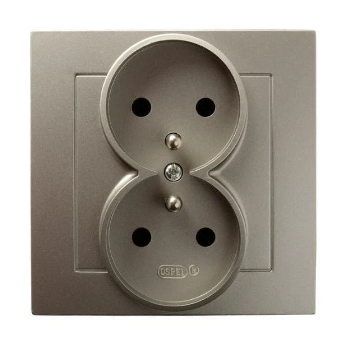 AS Gniazdo podwójne z uziemieniem z przesłonami torów prądowych kompletne z ramką satyna light GP-2GZP/45 OSPEL