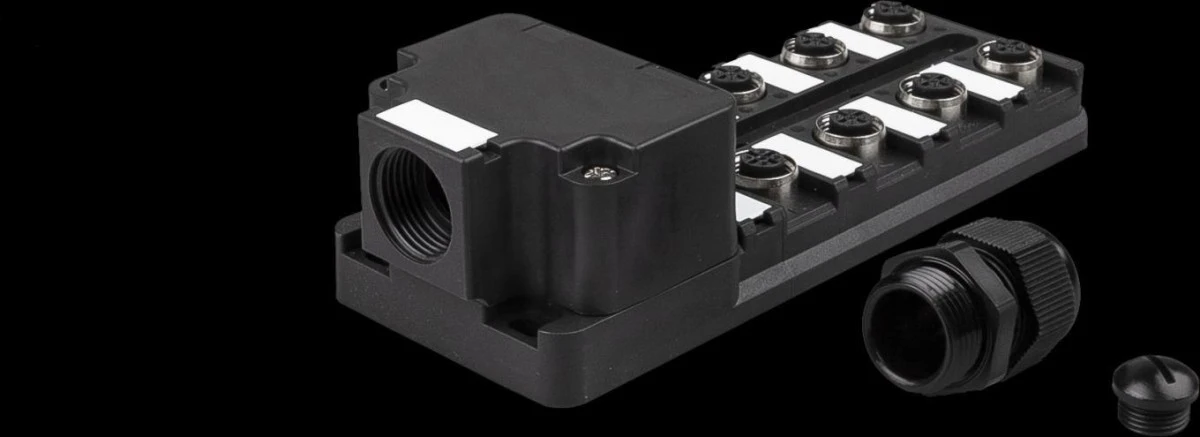 VK000009, rozdzielacz, 8x M12 5pin, PBT, M20 x 1,5