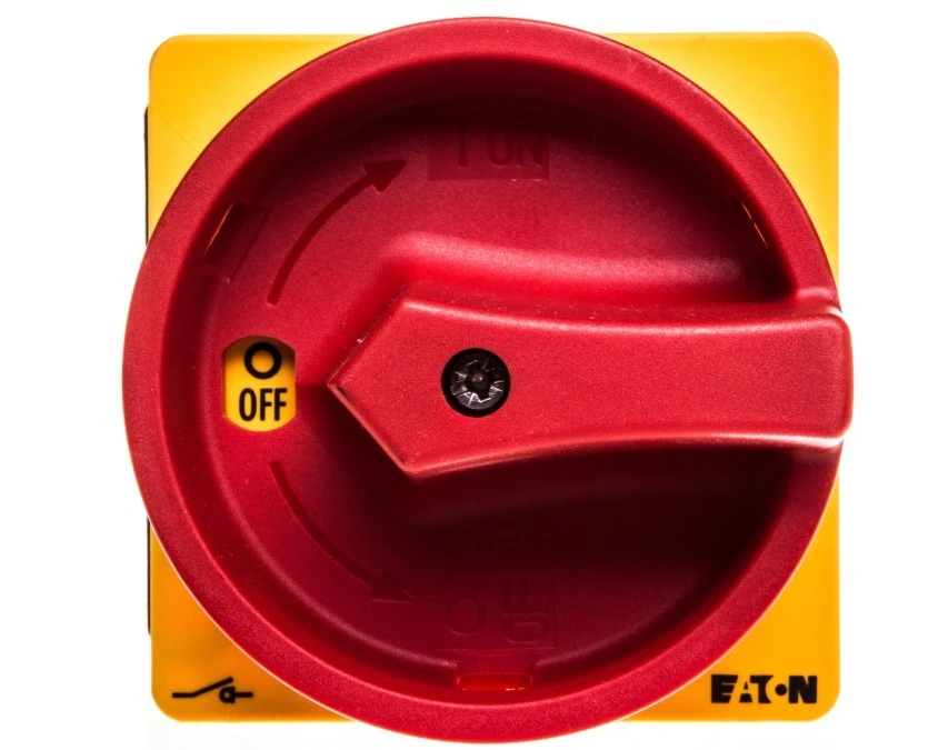 9. Rozłącznik główny, 3 bieg.+N, 80 A, montaż natablicowy, pokrętło czerwono-żółte z blokadą na kłódkę P3-80/EA/SVB/N EP-400927 723.40