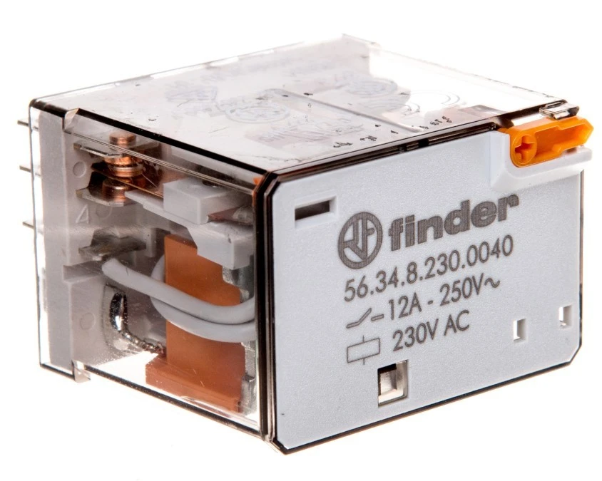 Przekaźnik 4P 12A 230V AC przycisk testujący, mechaniczny wskaźnik zadziałania 56.34.8.230.0040