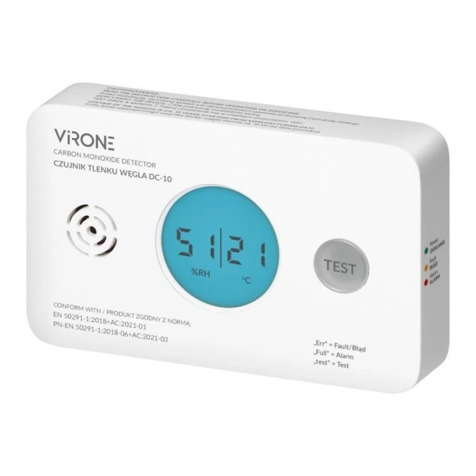 Czujnik tlenku węgla (czadu) na baterie 2xAA, żywotność 10lat, Virone DC-6